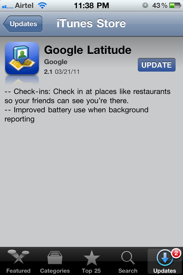 Google Latitude 2.1 for iOS now does Checkins