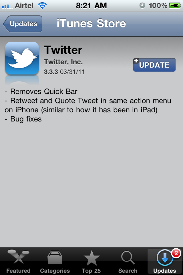 Twitter for iPhone 3.3.3 Removes #dickbar