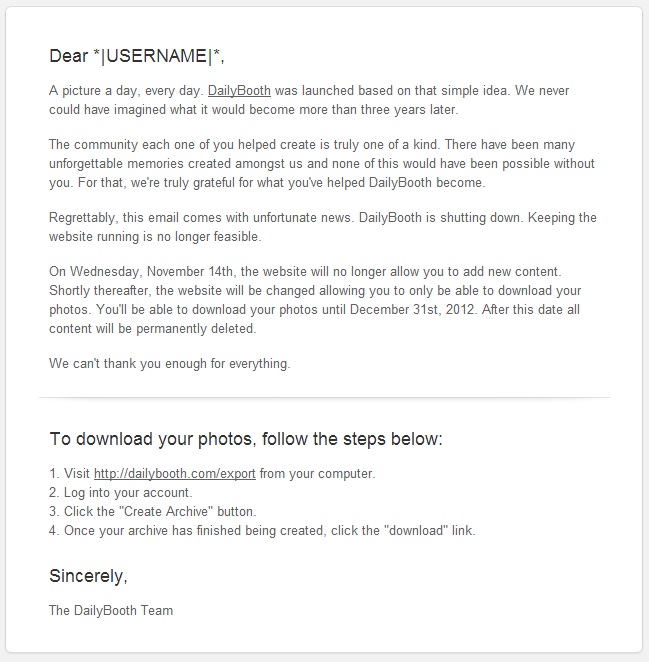 Dailybooth is Shutting Down